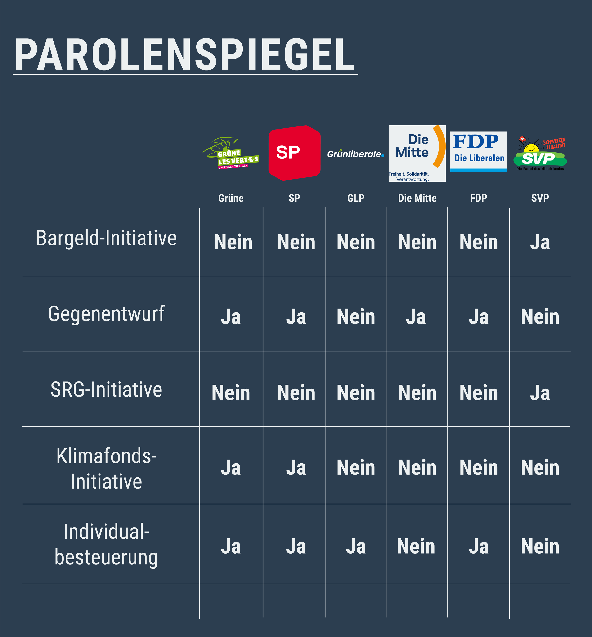 Für die Abstimmung am 8. März 2026 sieht der Parolenspiegel so aus: